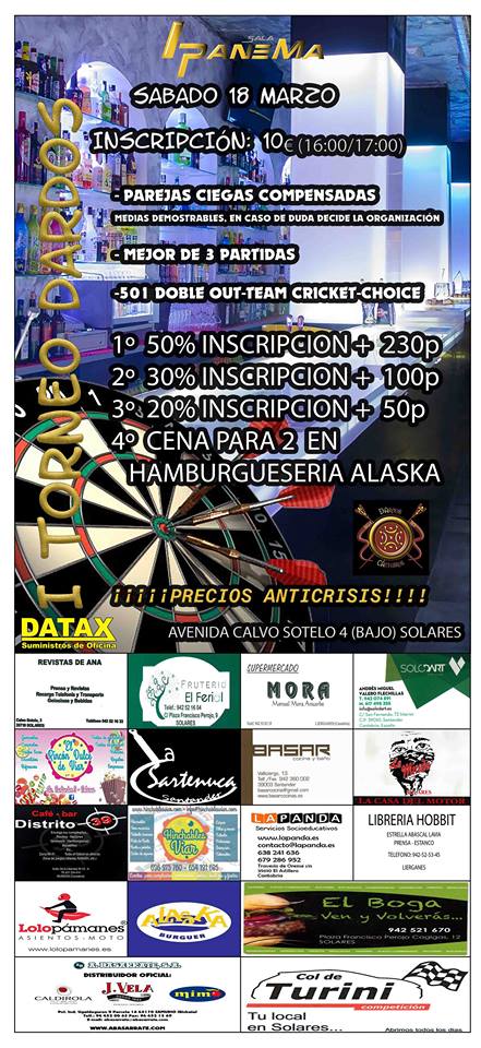 Torneo de dardos Ipanema, Solares 0 by Fernando Sanchez in Eventos Punta Plastico — 15 Mar, 2017 Share Tags: IpanemaSolaresTorneo de dardos