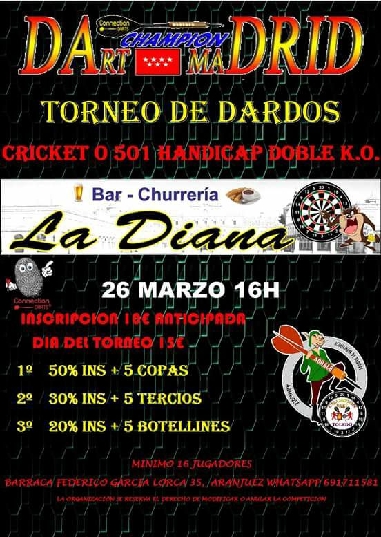 Torneo de dardos Bar Churrería La Diana, Aranjuez 0 by Fernando Sanchez in Eventos Punta Plastico — 22 Mar, 2017 Share Tags: AranjuezBar Churrería La DianaTorneo de dardos