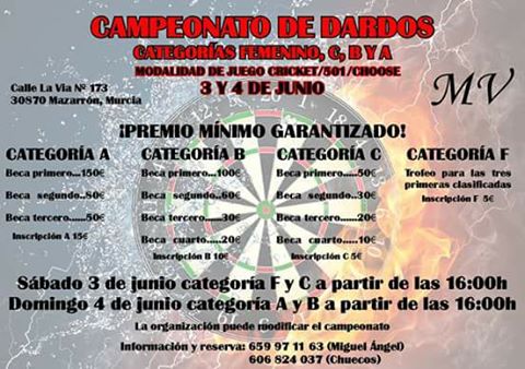 Campeonato de dardos MV, Mazarrón 0 by Fernando Sanchez in Eventos Punta Plastico — 30 May, 2017 Share Tags: Campeonato de dardosMazarrónMV