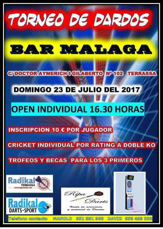 Torneo de dardos Bar Málaga, Terrassa 0 by Fernando Sanchez in Eventos Punta Plastico — 18 Jul, 2017 Share Tags: Bar MálagaTerrassaTorneo de dardos