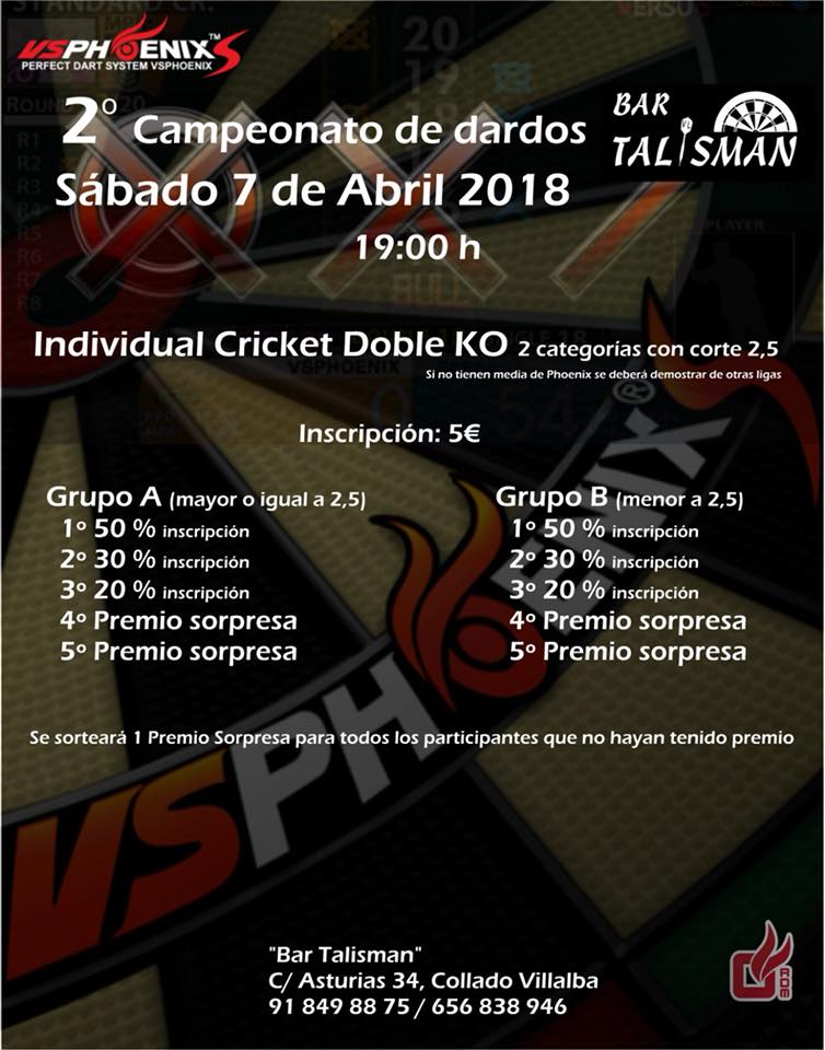 2º Campeonato de dardos Bar Talisman, Collado Villalba 0 by Fernando Sanchez in Eventos Punta Plastico — 6 Apr, 2018 Share Tags: 2º Campeonato de dardosBar TalismanCollado-Villalba